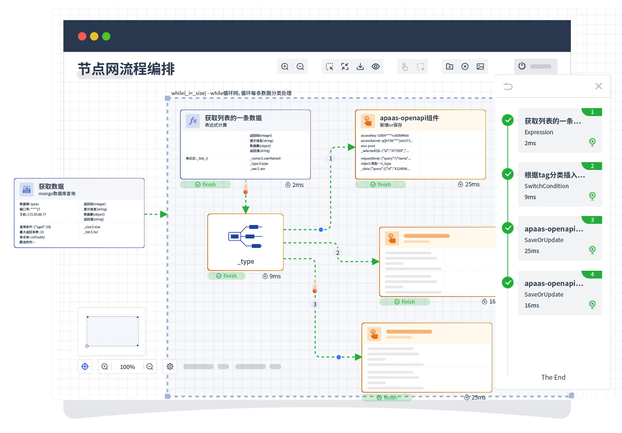 针对集成场景,,,,,,,组件定义后支持进行流程编制,,,,,,不同于传统代码方式,,,,,,,,,,通过图形化展示,,,,,,,,支持在线调试、、、、、、、、、、、、、、日志查看和运行回放。。。。。。